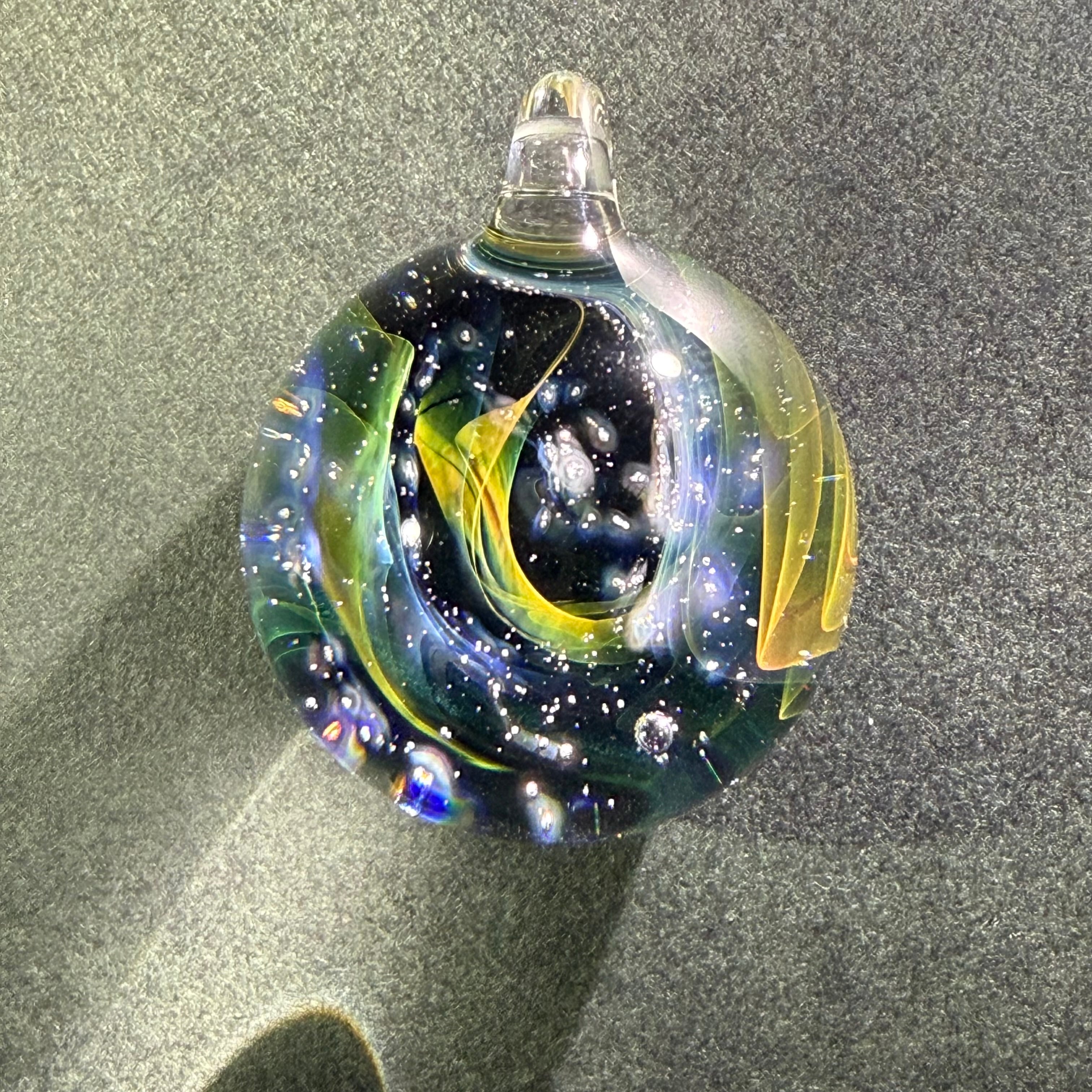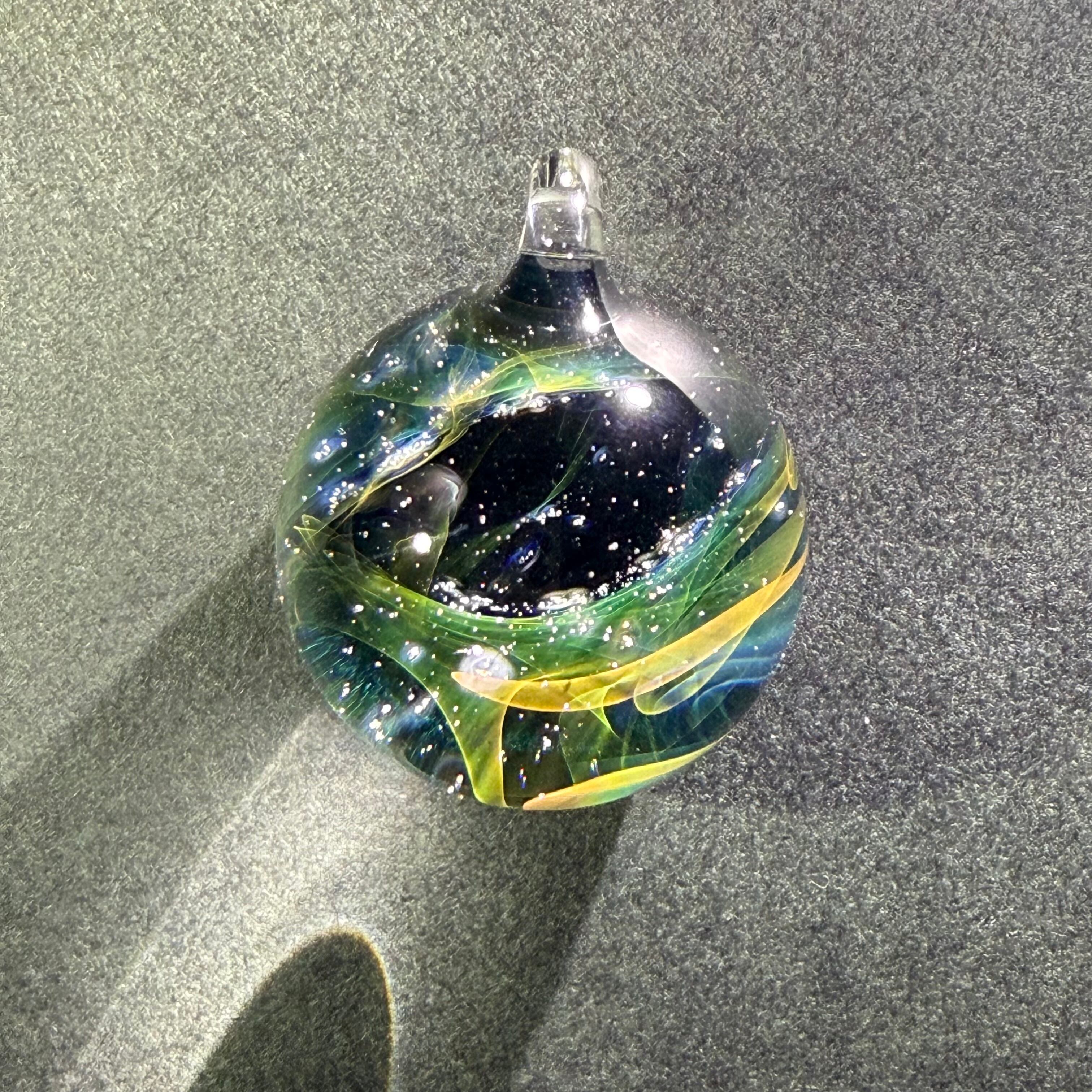 ・透明感と繊細な模様が魅力のペンダントトップです。耐熱ガラス(パイレックス)を使用し、手作業で一つひとつ丁寧に制作しています。